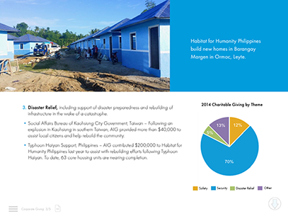 Emerging from the government bailout and paying back the taxpayers in full plus a $20 billion profit, AIG is renewed in their mission to provide their customers the best service possible. Leveraging their advantages, AIG distinquishes itself from the competition with it's global reach.