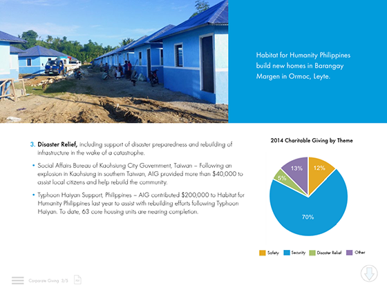 The report app is separated in eight sections plus the Letter from the CEO, a Q&A, and world region yearly report from the Americas, Asia Pacific, and Europe, Middle East, and Africa.