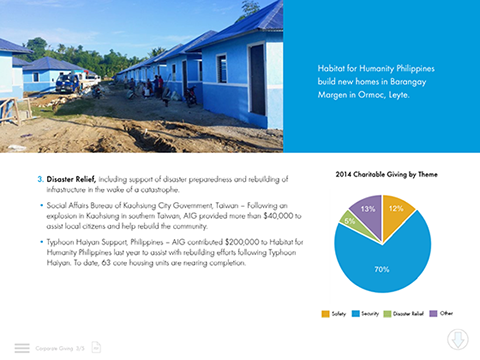 The report app is separated in eight sections plus the Letter from the CEO, a Q&A, and world region yearly report from the Americas, Asia Pacific, and Europe, Middle East, and Africa.