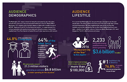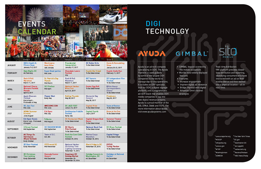 DIGI Media is a boutique out of home media company specializing in premium large format digital displays and networks. Operating in the Washington DC metro area, this brochure illustrates the area's positive demographics and upside retail advertising potential.