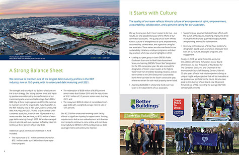 As the retail industry transforms, skillful adaptation is key to the success of retailers and property owners. While Kimco’s high-quality portfolio is well-positioned to adapt to changing consumer and retailer preferences, their mission remains the same: to create destinations for everyday living that inspire a sense of community and deliver value to their many stakeholders.