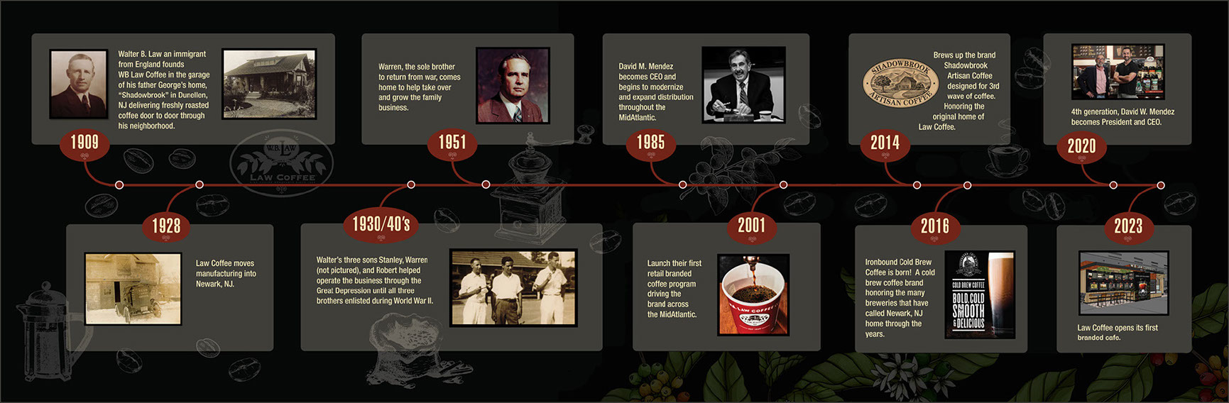 Founded in 1909, W.B. Law Coffee is one of the oldest family-owned coffee companies in the country. Five generations and 110 years later they continue to provide the NYC marketplace the distinctive taste of freshly roasted specialty coffees, espressos and teas. With their soon to be open store, they will also be serving travelers at Terminal A, Newark Airport.