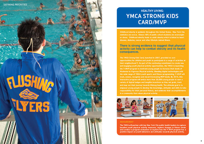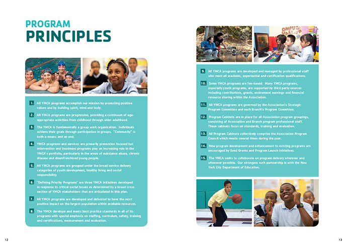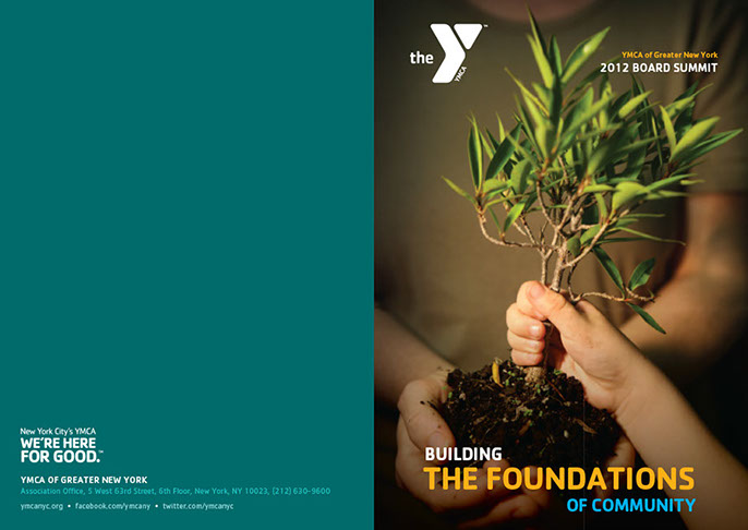 The YMCA of Greater New York produced this brochure to announce their strategic plan for the period 2012-2014. Titled Building the Foundations of Community the Y pursues its important community mission with three core motivations: Youth Development, Healthy Living and Social Responsibility. The brochure was designed with the new "Y" branding.